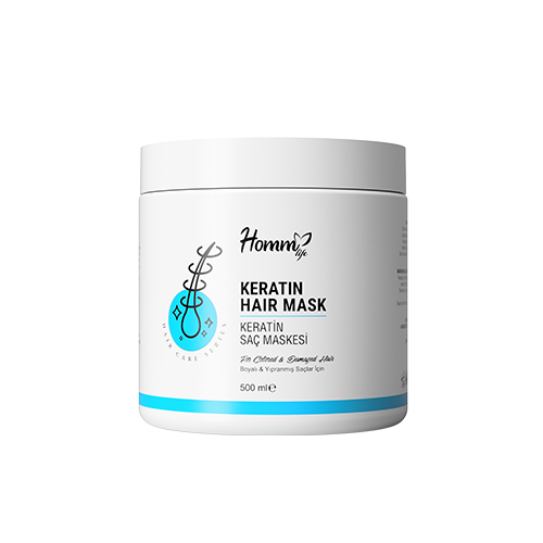 Homm Life Keratin Saç Maskesi; ısıl işlem, boya ve çevresel faktörler nedeniyle yıpranmış saçların onarım sürecine katkı sağlamak, kurumuş saç tellerine nem ve parlaklık kazandırmak amacıyla formüle edilmiş, durulanan tipte yoğun bakım maskesidir.